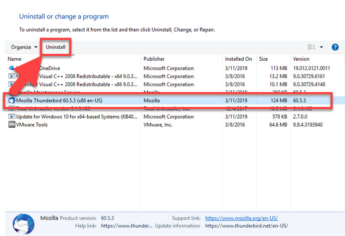 - Select Mozilla Thunderbird on the uninstall list, and click Uninstall on the menu bar